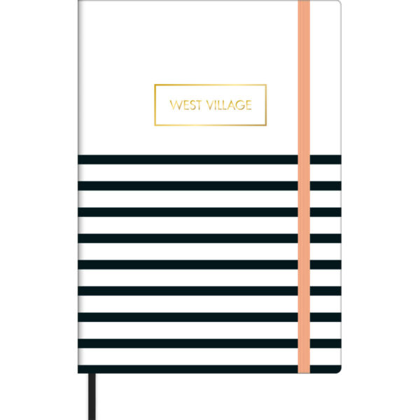O Caderno sem Pauta Costurado Capa Dura Fitto G West Village 90 Gramas 80 Folhas é ideal para o dia a dia. O produto possui capa dura com detalhe metalizado, elástico, fitilho e folhas sem pautas, com gramatura 90g/m².